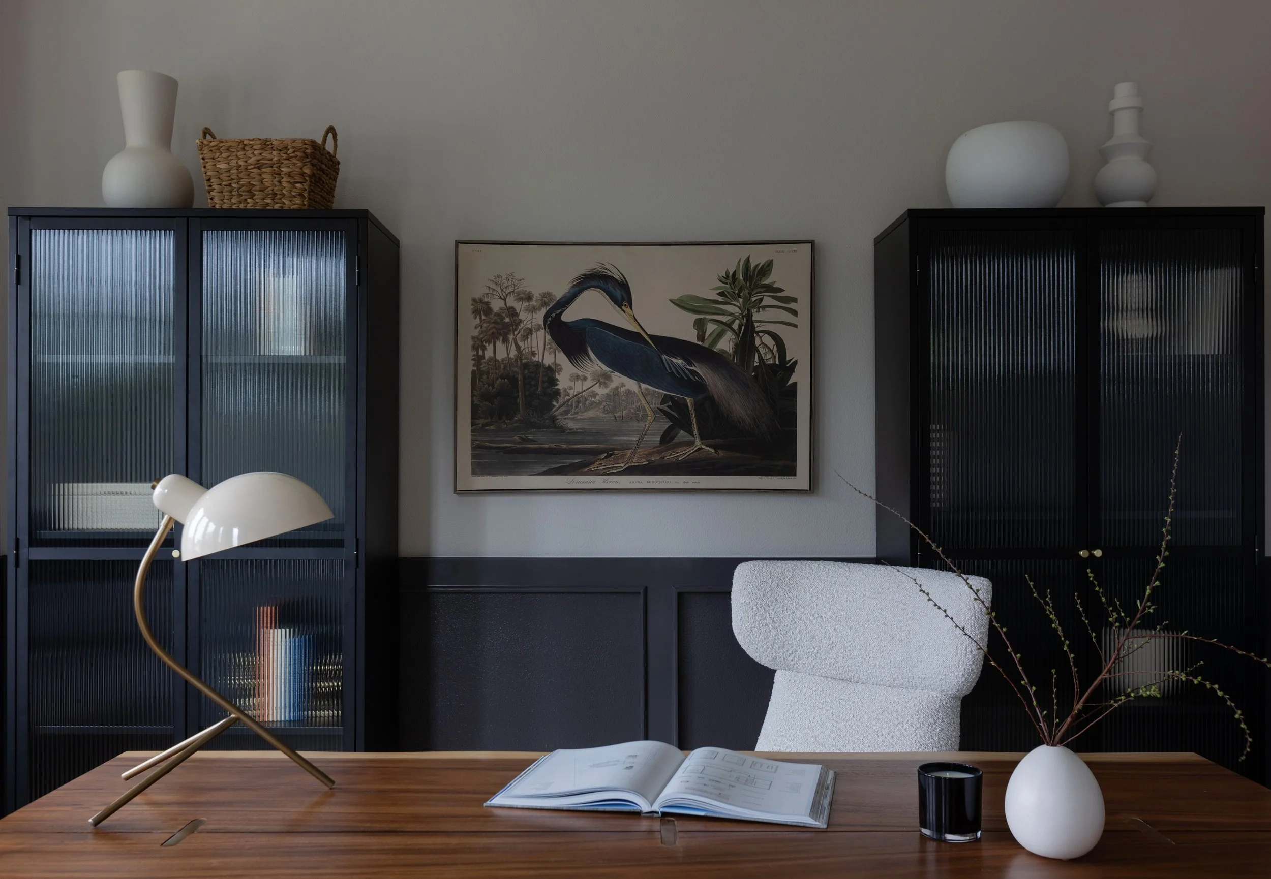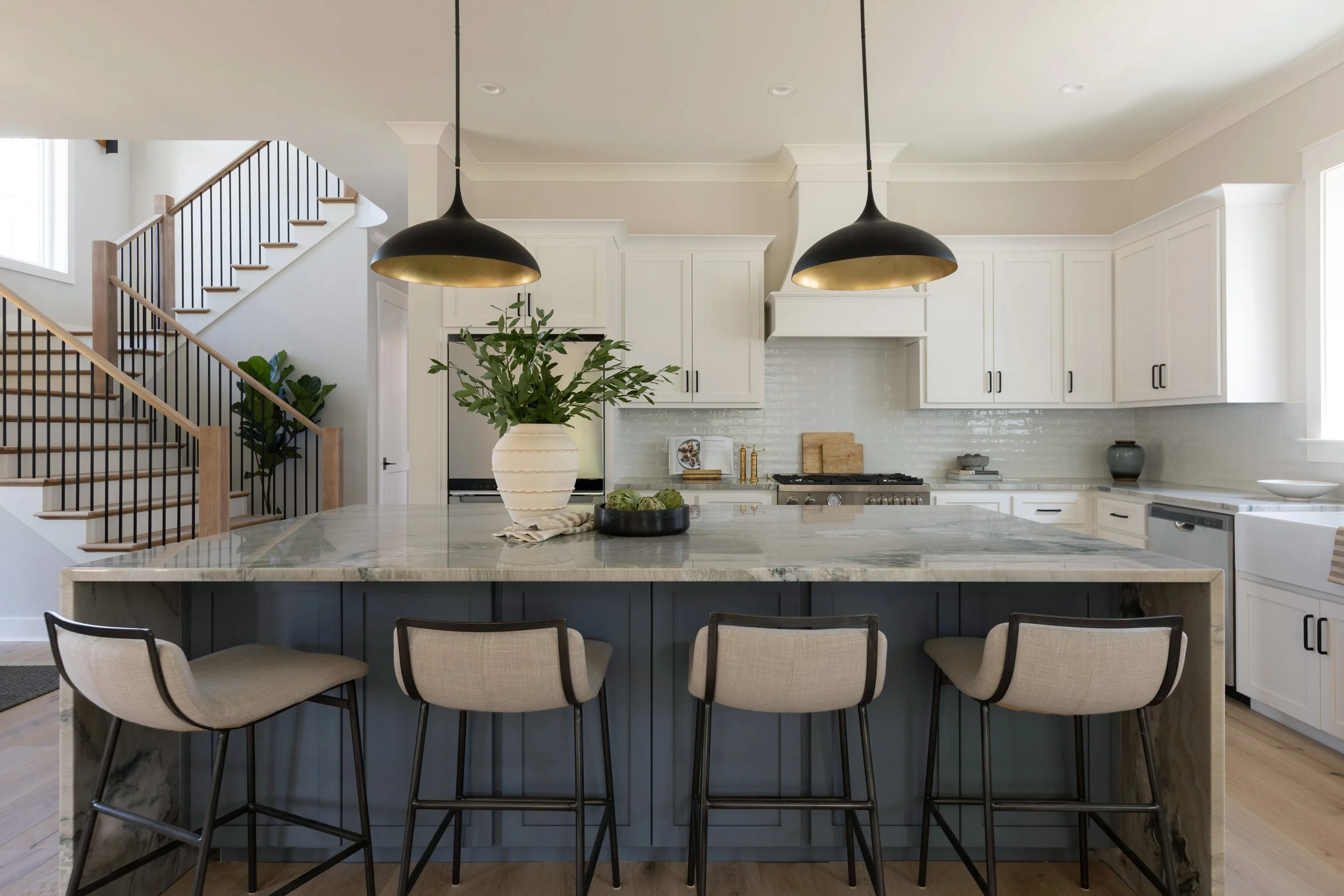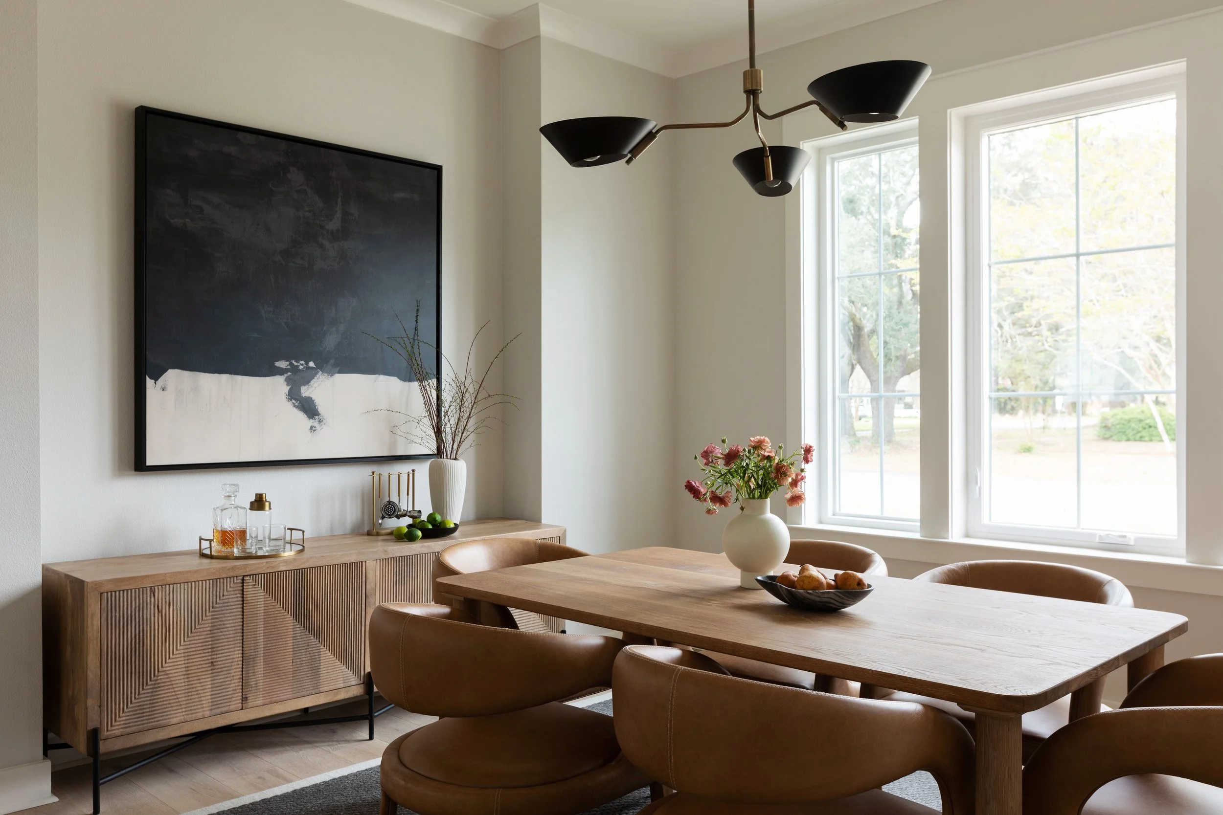 Designed in collaboration with Architect Jesse Brodeur, this new construction is truly a modern bachelor’s dream home. Full of vintage inspired silhouettes, warm textures & unique lighting, this space stands apart from the traditional homes in East Hill in the best way possible.