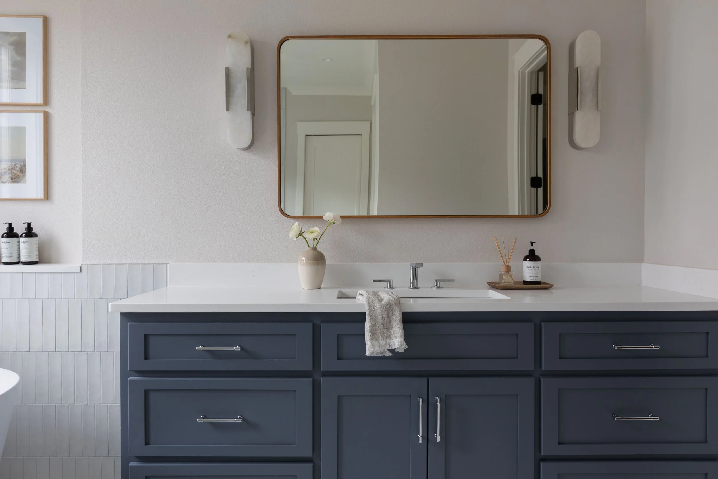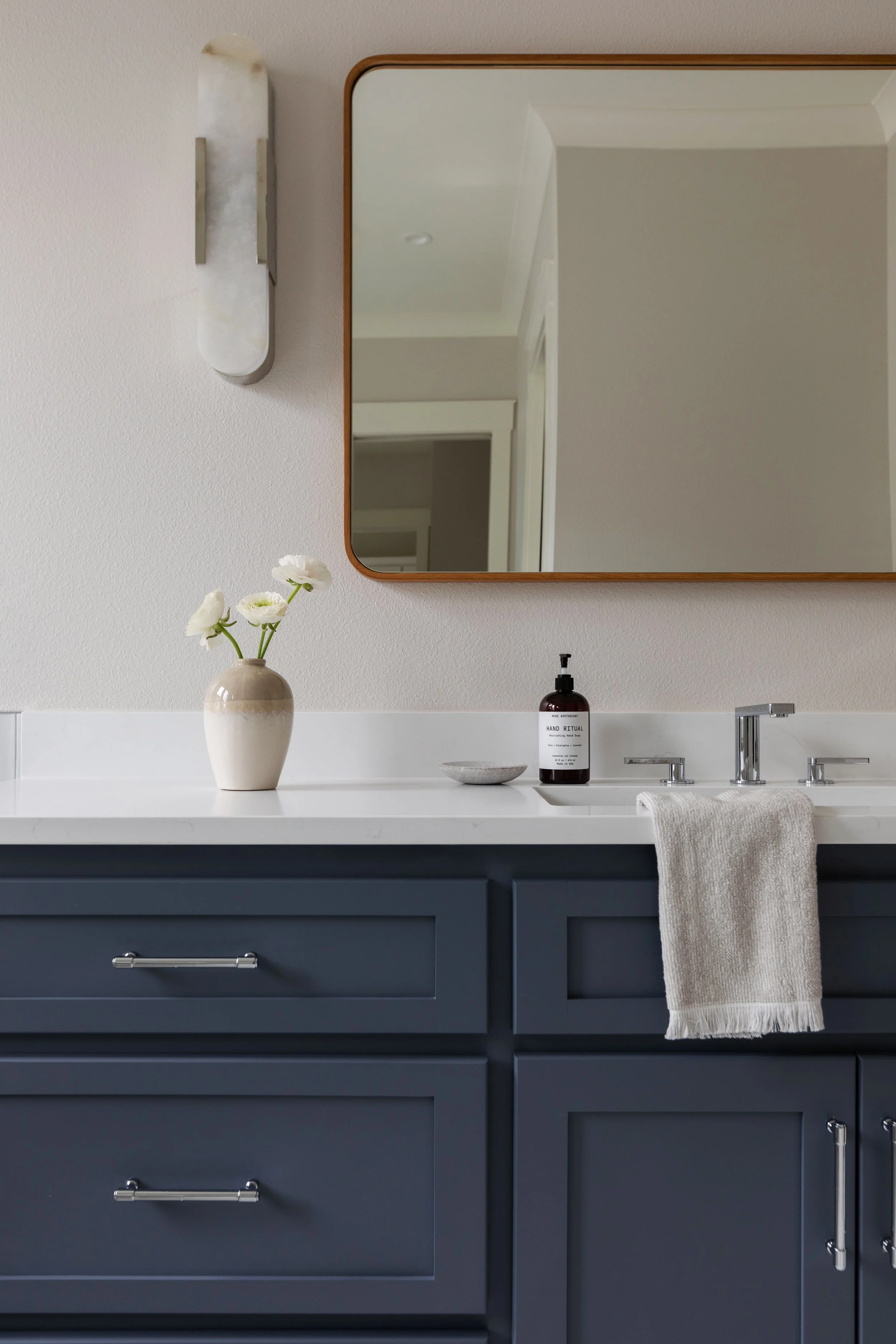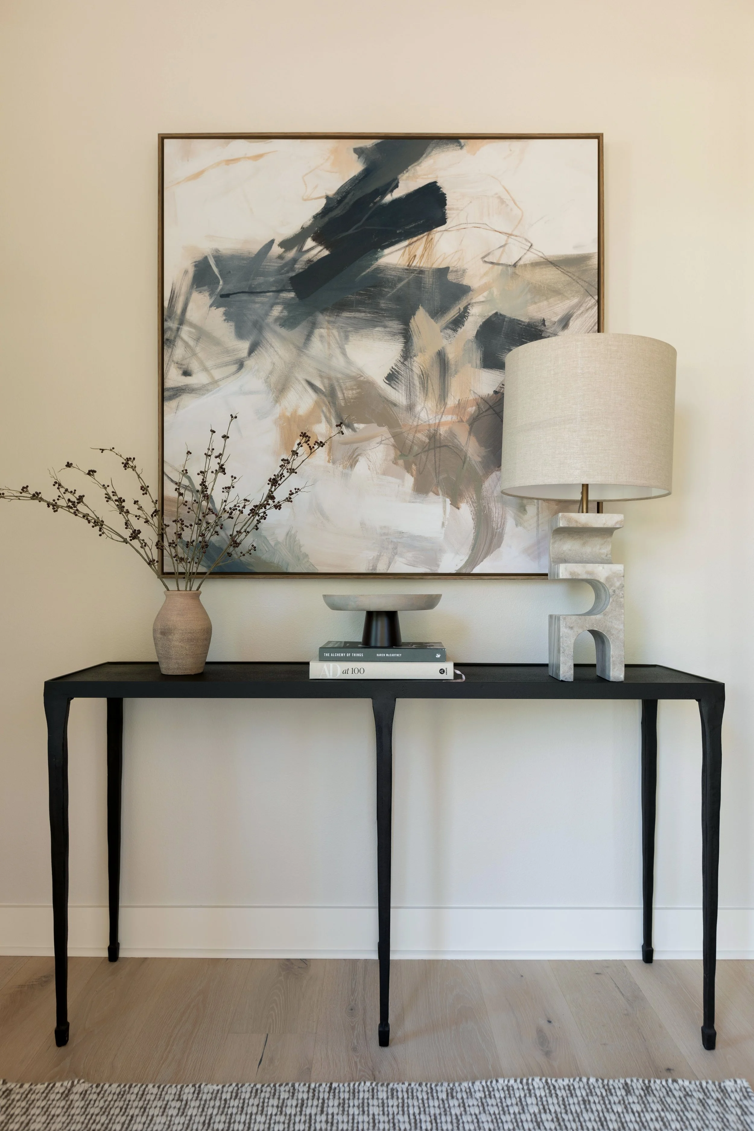 Designed in collaboration with Architect Jesse Brodeur, this new construction is truly a modern bachelor’s dream home. Full of vintage inspired silhouettes, warm textures & unique lighting, this space stands apart from the traditional homes in East Hill in the best way possible.